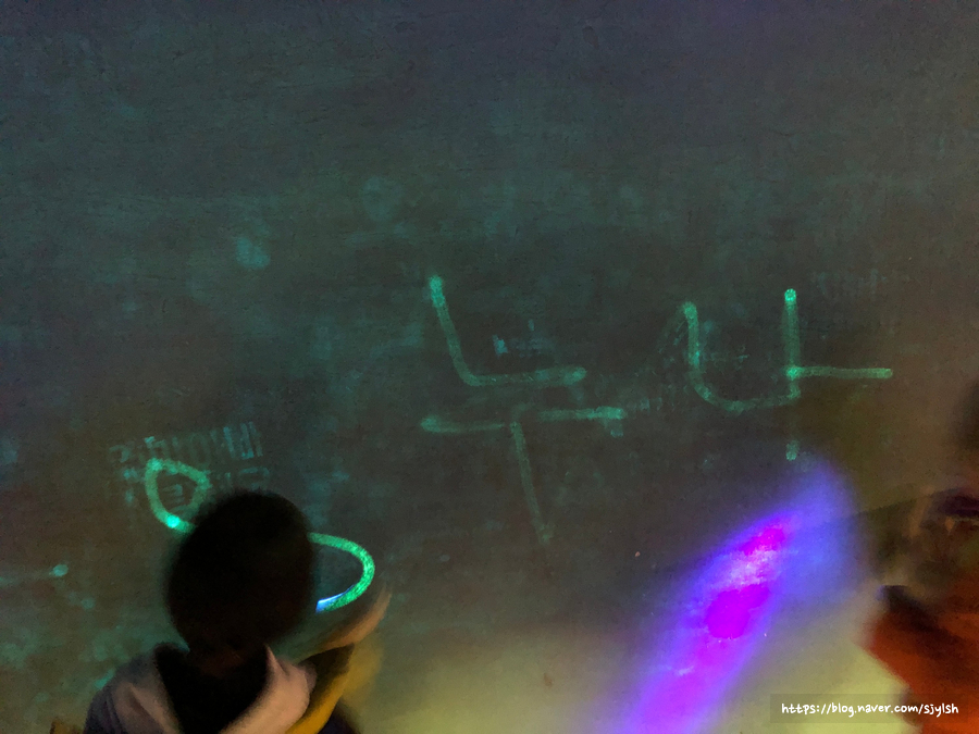 별건 아닌데, 야광페인트를 칠해둔 벽에 플레시로 그림을 그릴 수 있게 꾸며놓았다.
