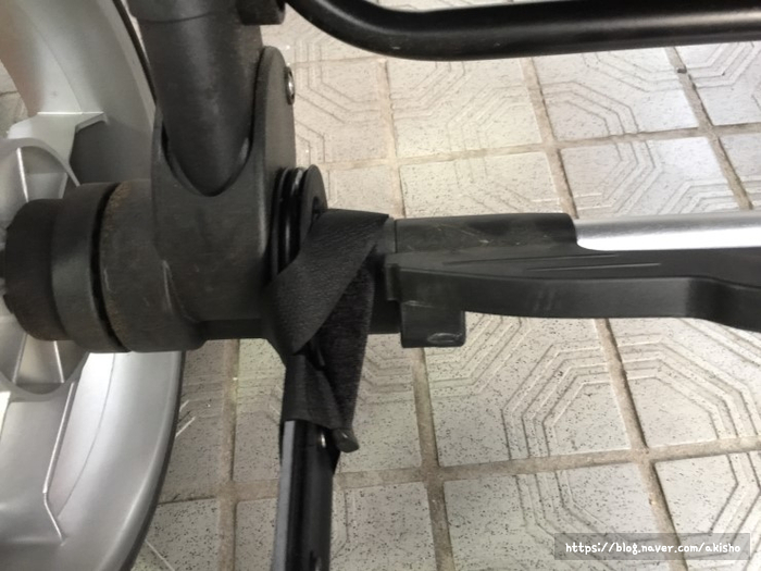 유모차와 간격을 아무리 넓혀도 사이 간격이 좁아서 아이가 아무래도 답답할 것 같다. 하지만 더 넓히면 유모차 끌기가 불편해 지니 어쩔 수 없다.