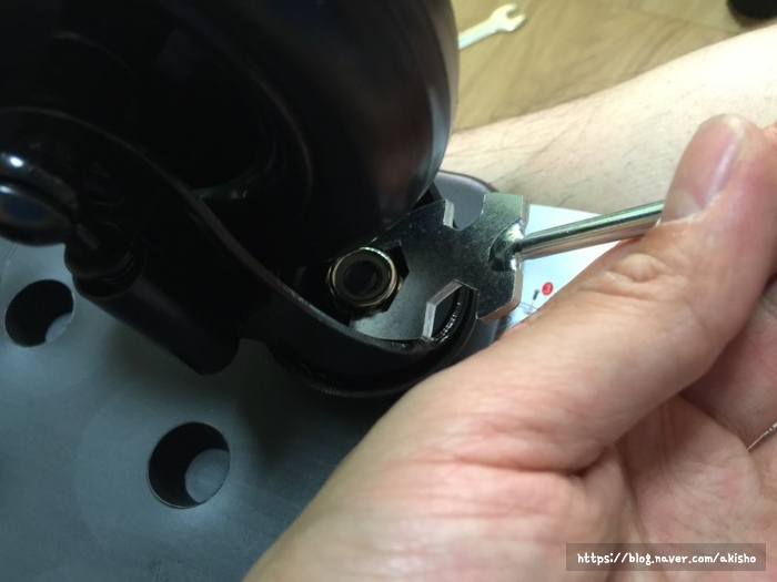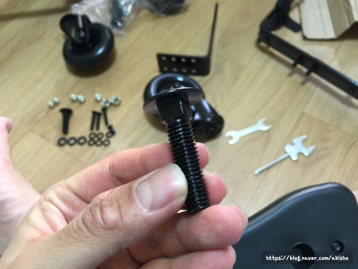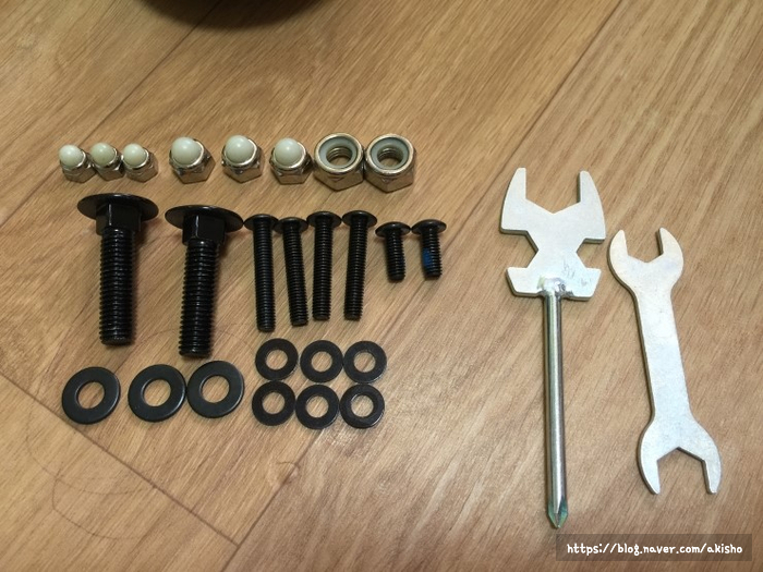 첫 조립은 발판에 이 볼트로 바퀴를 고정한 것부터 시작이다