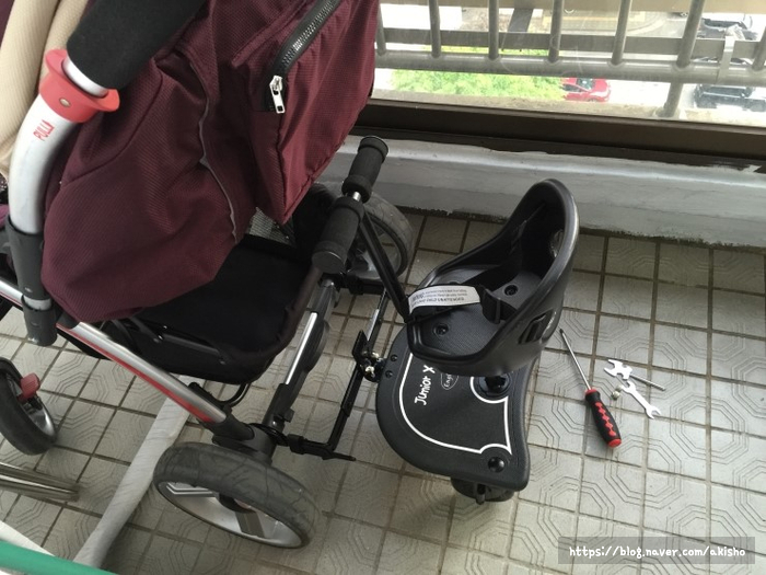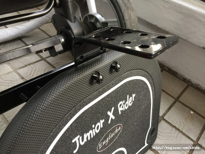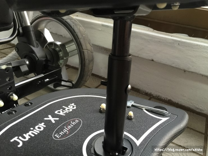 우선 잉글라차 주니어 X 라이더의 경우 기존에 쓰고 있던 유모차에 걸어서 사용하는 일종의 영아용 자전거라고 해야 할까. 자유로운 높낮이 조절로 어떤 유모차에도 연결이 가능토록 설계되어 있다. 그리서 일단 걱정하지 말고 구매부터 하기로 했다.