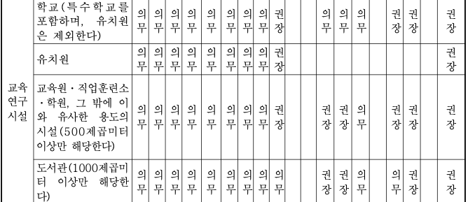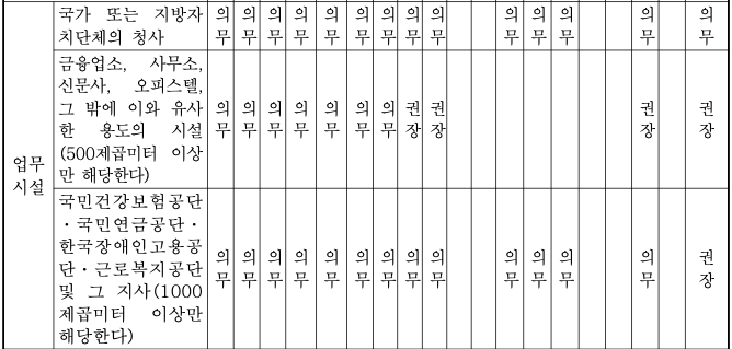 장애인 편의시설의 종류 및 기준에 이어 이번에는 편의 시설들 중 의무 설치 혹은 권장 설치 여부에 대해 알아보자. (의무는 설치하지 않으면 위법사항이 되는 것이고, 권장 설치는 법적 사항은 아니지만 허가 때 장애인 협회 혹은 관할 사회복지과에서 가부여부를 판단한다)