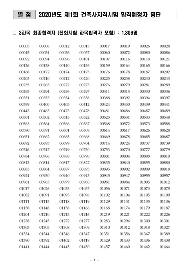 2019년도 건축사시험 합격자가 1,000명대를 돌파하더니, 연 2회로 늘어난 2020년 1회 시험에서만 이번엔 합격자가 1,306명을 찍었다. 충격적인 일이 아닐 수 없는데, 앞으로 이렇게 되면 올 9월로 예정되어 있는 2020년 2회 건축사 시험 합격 예정자까지 합치면 연 거의 2,000명 대의 합격자가 배출되는 유례없는 건축사 자격증 호황 시대가 도래할 것으로 보인다.