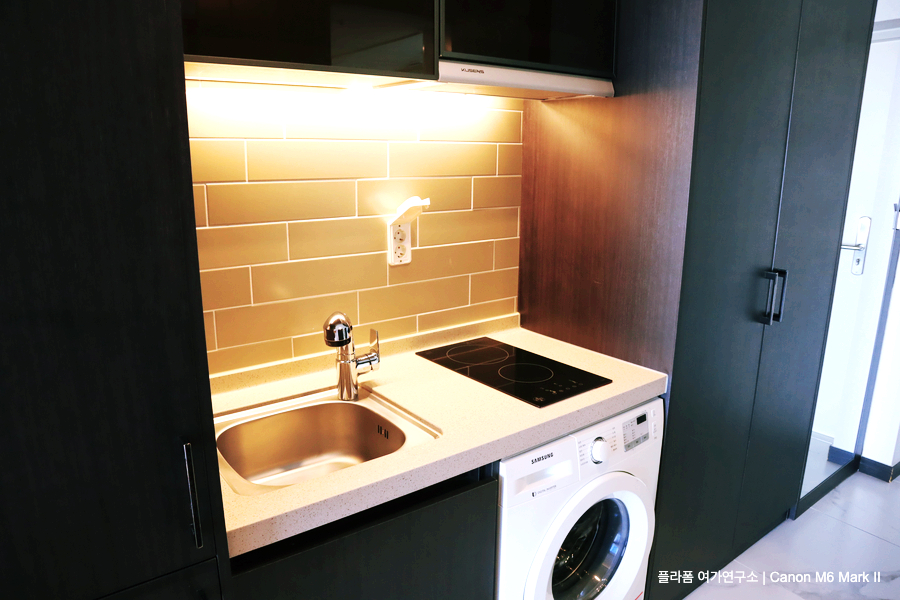 쿡탑은 사용할 수 없게 되어 있다. 거의 세컨드 세면대 정도의 용도라고 보면 된다.