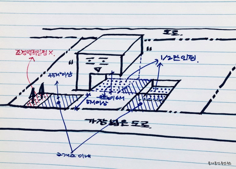 3. 조경면적은 인정하지 않음, 필로티 혹은 지하에 설치된 경우 1/2만 인정