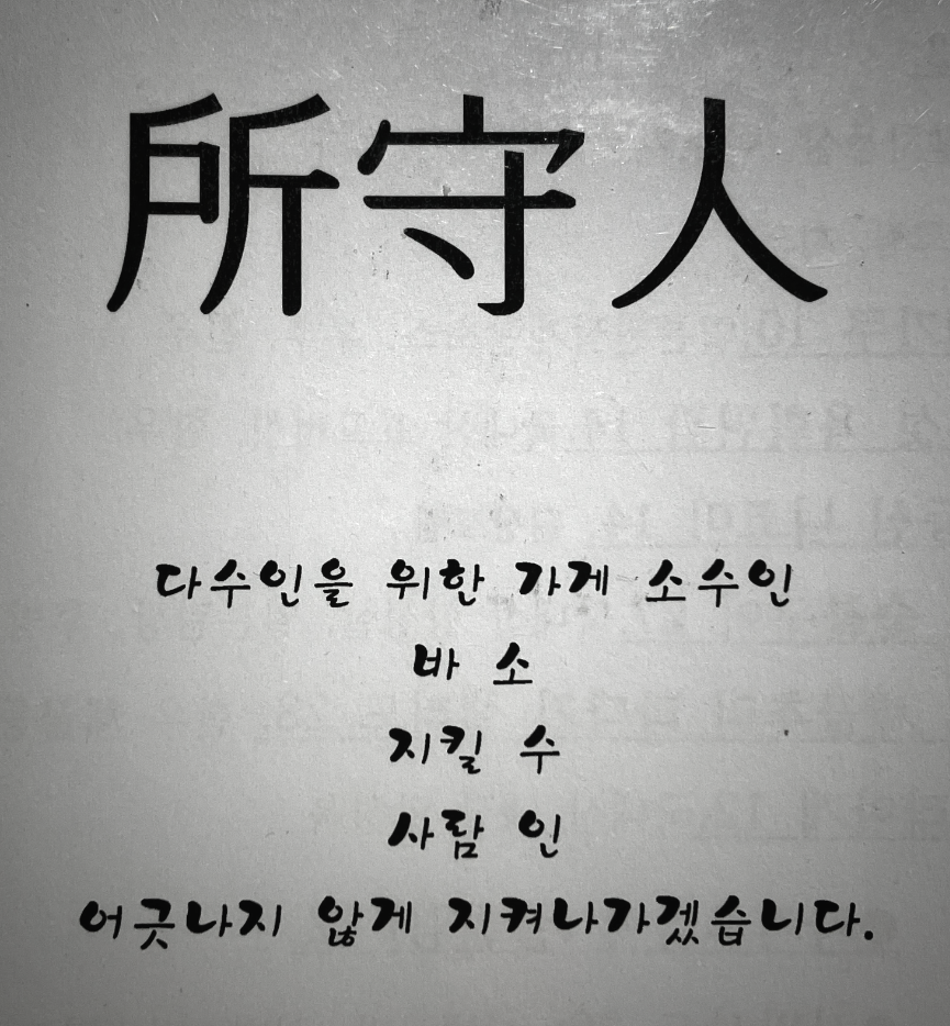 '소수인', 바-소, 지킬-수, 사람-인, 사람을 지키는 곳. 맛으로 사람을 지켜나간다는 뜻. 많이 팔아서 이익을 내기보다 맛으로 꾸준히 사람들이 오게 만들겠다는 뜻인 것 같다. 앞으로도 쭉 번창하고 부산에 올 때마다 들를 수 있게 오래 유지되는 가게가 되었으면 좋겠다.