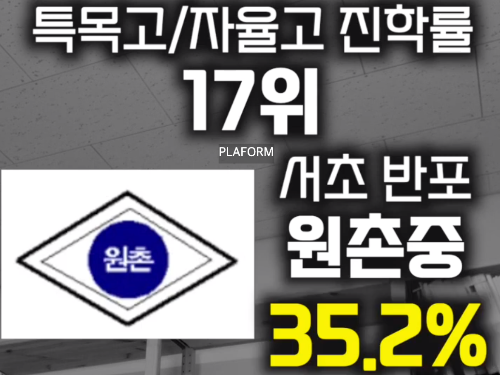 17위를 차지한 원촌중학교는 서초구 반포동에 위치하고 있는 학교다. 재학생 332명 가운데 과학고 3명, 외국어고 10명, 예체고 4명, 자사고 100명, 총 117명(35.2%)의 학생이 진학했다.