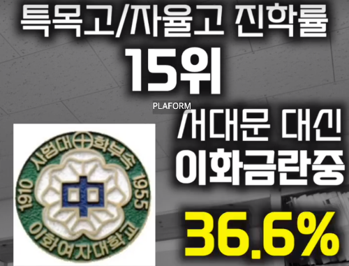 15위를 차지한 이화금란중학교는 서대문구 대신동에 위치하고 있는 학교다. 재학생 153명 가운데 외국어고 4명, 예체고 2명, 자사고 50명, 총 56명(36.6%)의 학생이 진학했다.