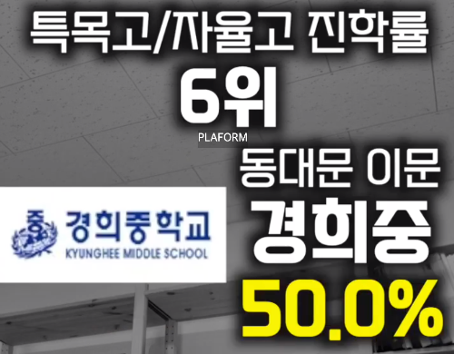 6위를 차지한 경희중학교는 동대문구 이문동에 위치하고 있는 학교다. 재학생 170명 가운데 과학고 1명, 외국어고 2명, 자사고 82명, 총 85명(50.0%)의 학생이 진학했다.