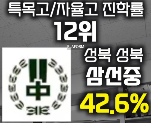 12위를 차지한 삼선중학교는 성북구 성북동에 위치하고 있는 학교다. 재학생 155명 가운데 과학고 3명, 외국어고 4명, 예체고 1명, 자사고 29명, 총 66명(42.6%)의 학생이 진학했다.