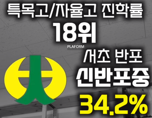 18위를 차지한 신반포중학교는 서초구 반포동에 위치하고 있는 학교다. 재학생 202명 가운데 과학고 1명, 외국어고 2명, 자사고 65명, 총 69명(34.2%)의 학생이 진학했다.
