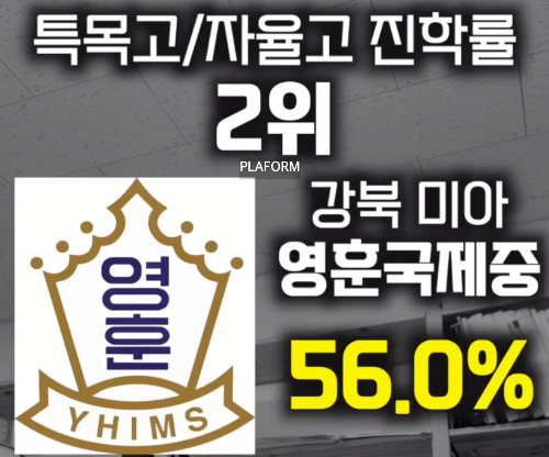 2위를 차지한 영훈국제중학교는 강북구 미아동에 위치하고 있는 학교다. 재학생 159명 가운데 과학고 4명, 외국어고 35명, 예체고 3명, 자사고 47명, 총 89명(56.0%)의 학생이 진학했다.