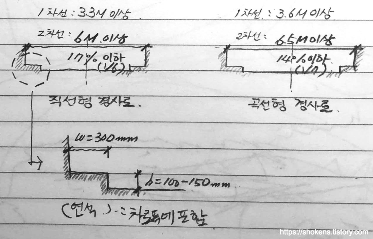 경사로 종류 | 경사도 | 1차선 | 2차선 |
